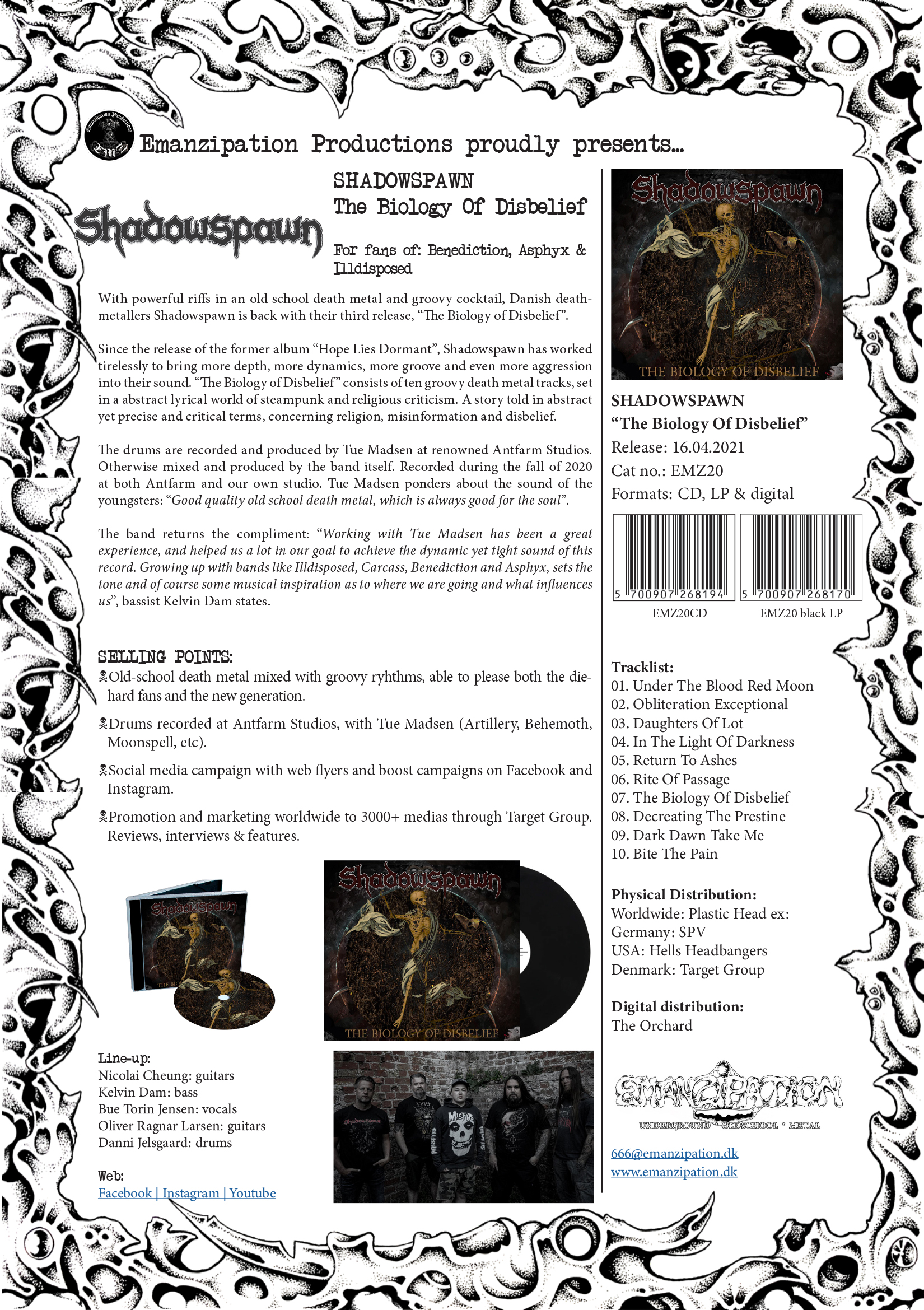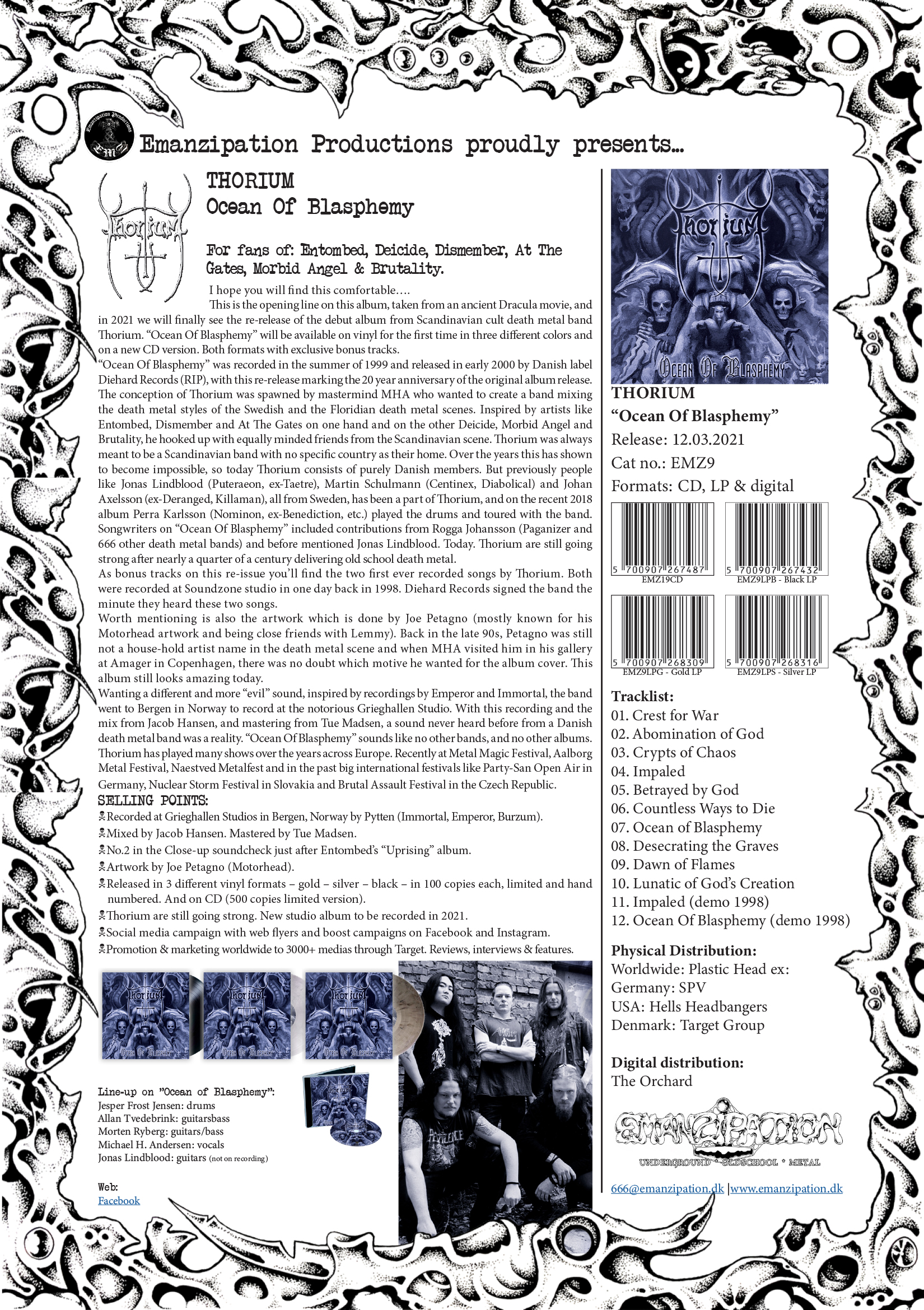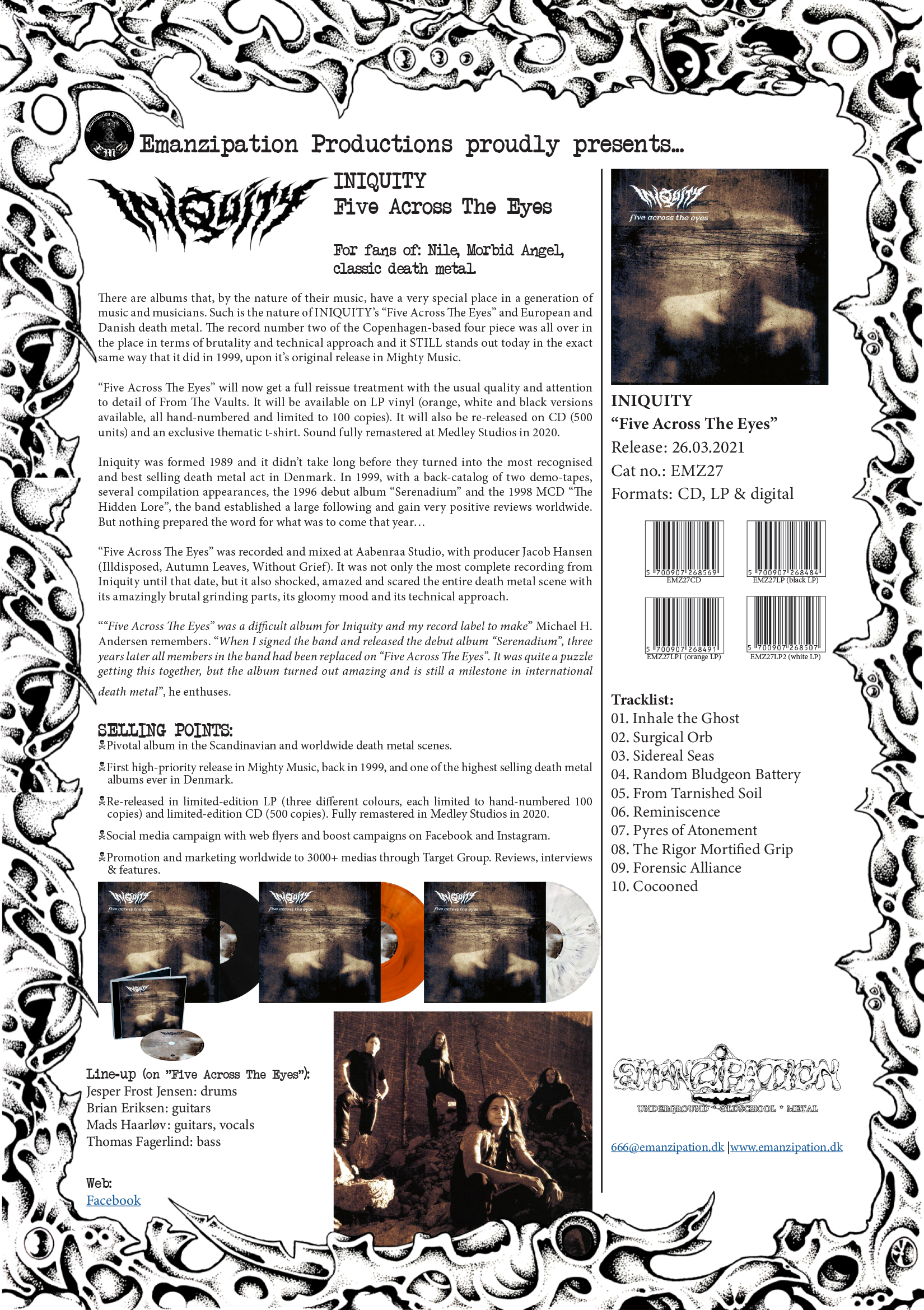 The “reformation” came in 2017, where Dennis switched to drums and Lasse and Christian joined the band on guitar and bass. The intention was to create music that echoes the bowels of hell. By using lower tuned guitars, guttural hymns, and intense drums. That vision has remained since then in the band. Though the “Engulfed in Pestilent Darkness” album, the hymns have only gotten more desolate and Apocalyptic. Which has come across the few concerts the band has played from 2017 to now. And that comes across on the new album, “Armageddon”, released on Emanzipation on November 2021.